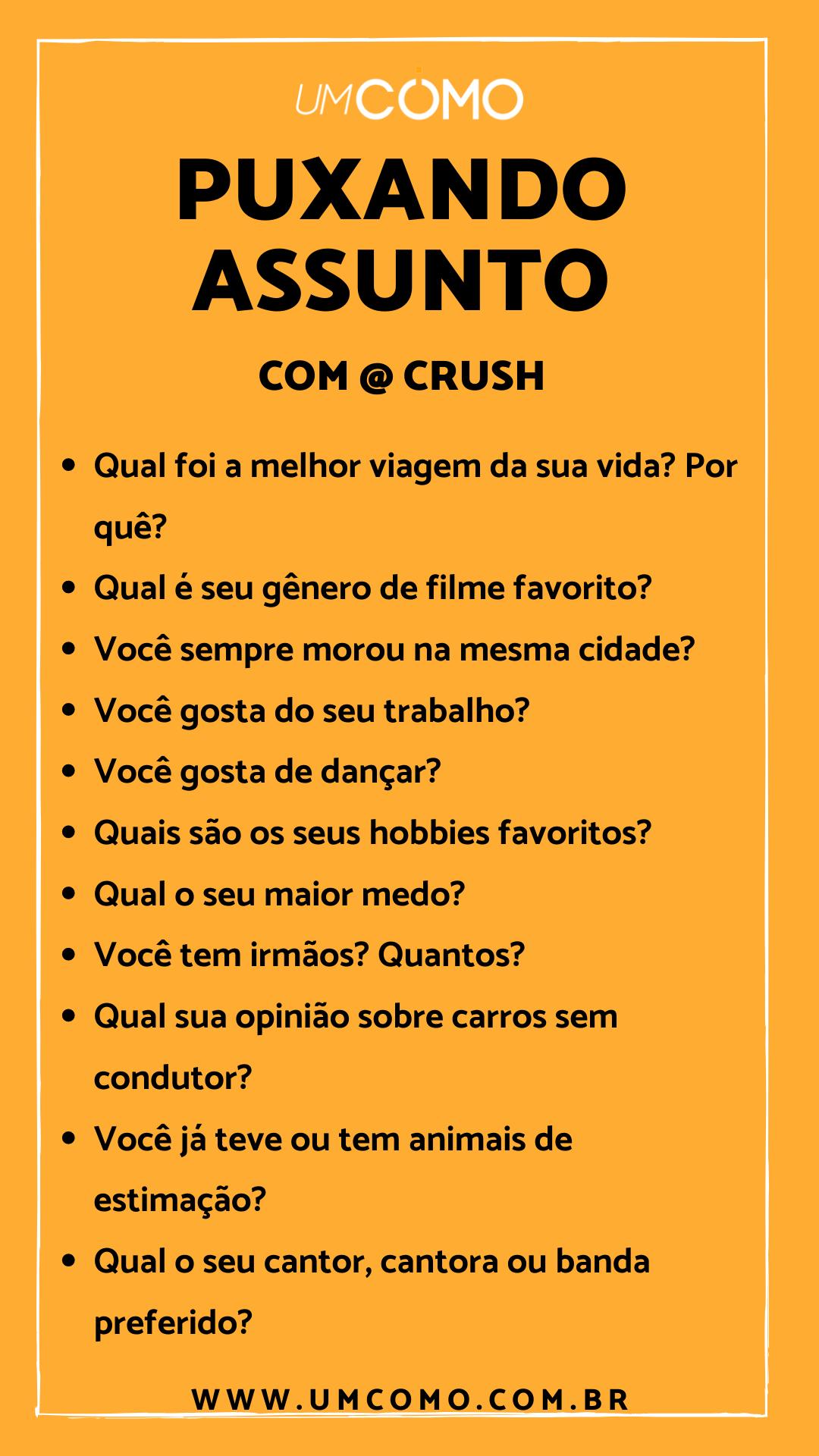 Por isso, se você tem um encontro em vista e quer manter uma conversa descontraída e tranquila, não perca este artigo do umCOMO no qual sugerimos 60 assuntos para conversar com a crush. Fique nesta página!