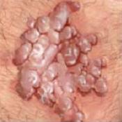 As verrugas genitais têm geralmente a mesma tonalidade da pele e apresentam-se como pequenas saliências suaves ao toque e com aspecto de couve-flor. Apesar de indolores, podem disseminar-se na área genital e provocar comichão. Esta infecção não coloca só por si a saúde em risco, não sendo potencialmente perigosa. Contudo, as verrugas podem causar sangramento e aumentar o risco de infecção por AIDS.